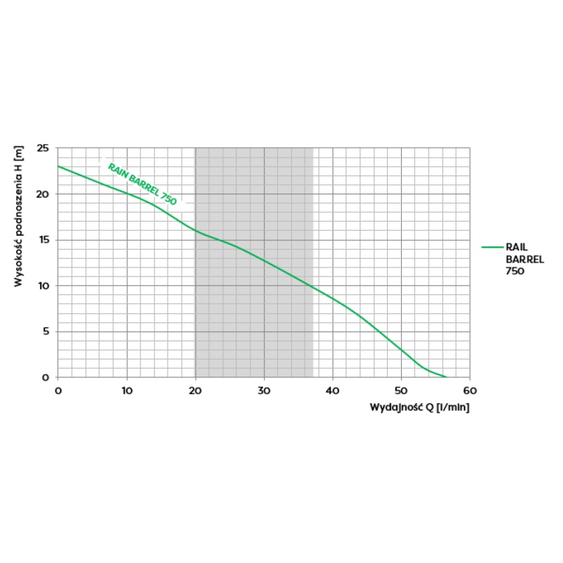 Model Rain Barrel 750 wyróżnia się wysokim ciśnieniem tłoczenia – osiąga aż 23 metry podnoszenia przy wydajności do 55 litrów na minutę. Dzięki temu doskonale nadaje się zarówno do odwadniania, jak i podlewania ogrodu.